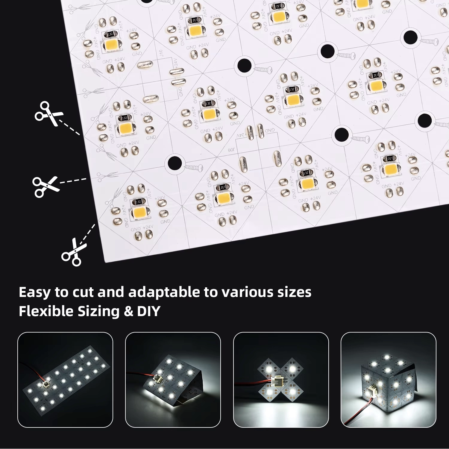 Each sheet includes two plug-and-play connectors: one single-ended lead for powering an individual sheet and one double-ended lead for linking sheets together in a run, simplifying installation with 24V systems and drivers. Designed for consistent, uniform output with efficient LED technology, these panels offer reliable, low-voltage performance for professional architectural, retail, and custom display projects.